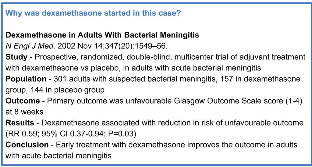 - MRI brain – minimal meningeal enhancement, no other intracranial abnormalities